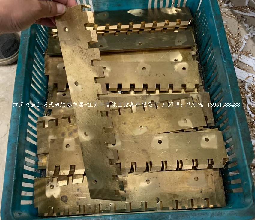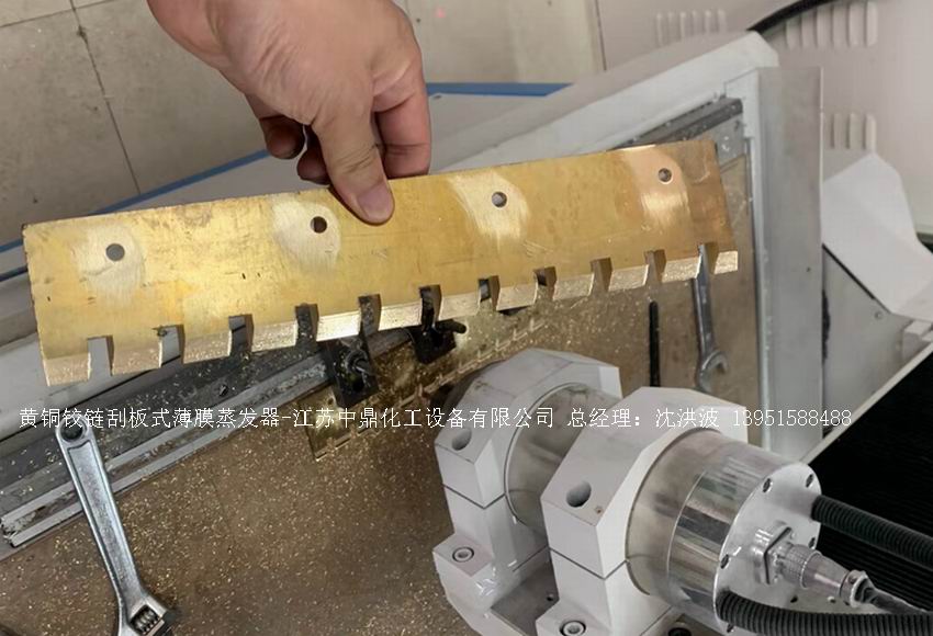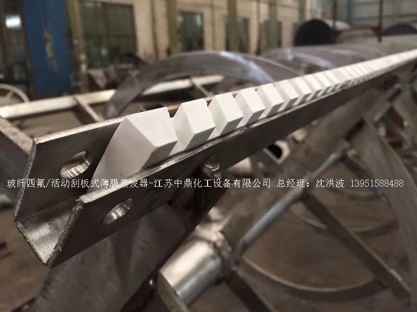 如果是蒸汽温度一般在180°以下,导热油温度一般在280°以下,熔盐温度一般在380°以下。刮板也称刮刀(刮板分为:玻纤四氟刮板、碳纤维四氟刮板、石墨四氟刮板、黄铜刮板、合金钢等)和传动装置:电机(普通变频电机、防爆变频电机、高速变频电机),减速机(摆线针轮减速机、齿轮减速机),机架,轴封系统(单端面机械密封、双端面机械密封、磁力密封等,如果抽真空必须选用双端面机械密封或者磁力密封),转动轴、汽液分离装置、液体分布器、蒸发器转子支架、轨道刮板槽、底部轴套等部件组成。