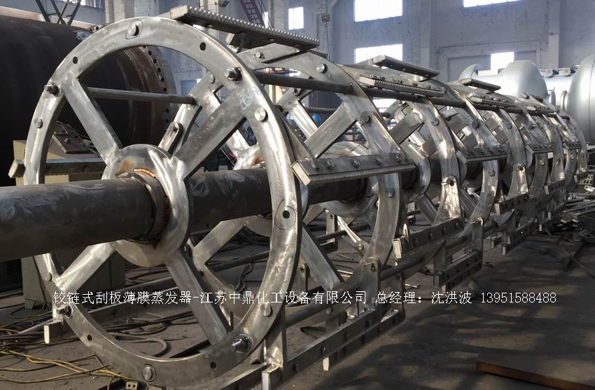 刮板式薄膜蒸发器是利用高速旋转将液体分布成均匀薄膜而进行蒸发或蒸馏的一种高效蒸发、蒸馏设备,也可进行脱臭、脱泡反应及加热、冷却等单元操作,可广泛适用于农药、甘草磷、制药、硫氢化钠、食品、轻工、石油、化工、环保等行业。刮板式薄膜蒸发器,它是一种适应性很强的新型蒸发器,例如对高粘度、热敏性和易结晶、结垢的物料都适用。